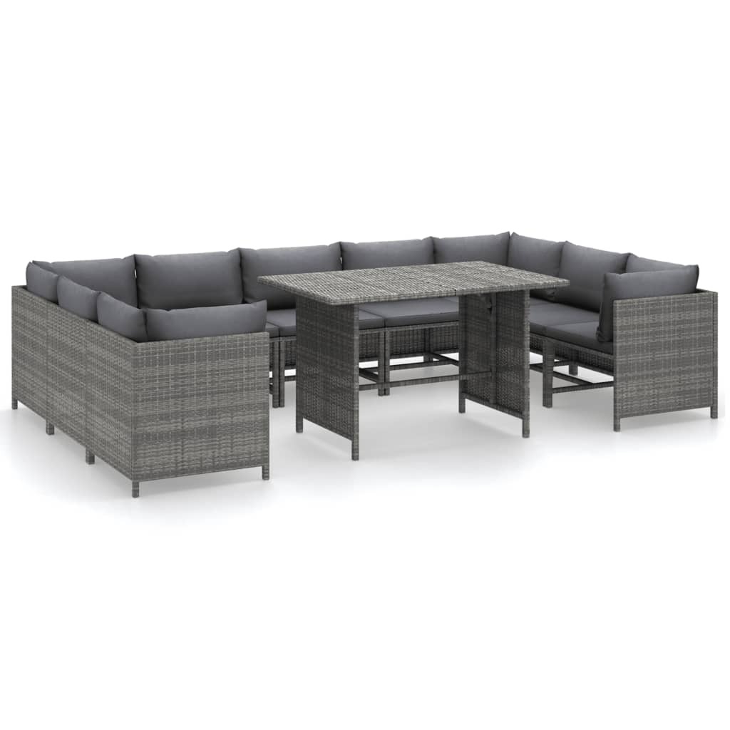 3 Piece Garden Bar Set Grey Poly Rattan&Solid Wood Acacia