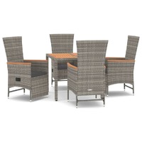 5 Piece Garden Dining Set with Cushions Grey Poly Rattan