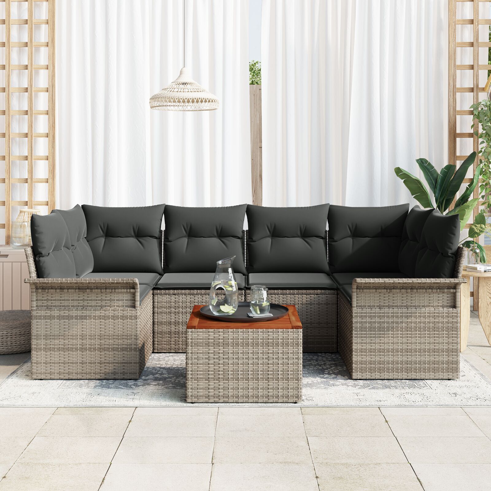 2 Piece Garden Lounge Set with Cushions Poly Rattan Beige