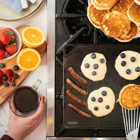 Crafted in the USA using just iron and natural vegetable oil, this grill/griddle develops a naturally non-stick surface over time. It fits over two stovetop burners and is safe to use on gas, glass, and induction cooktops, as well as ovens and outdoor grills. Built for a lifetime of meals, Lodge’s cast iron delivers consistent heat and superior performance you can count on.