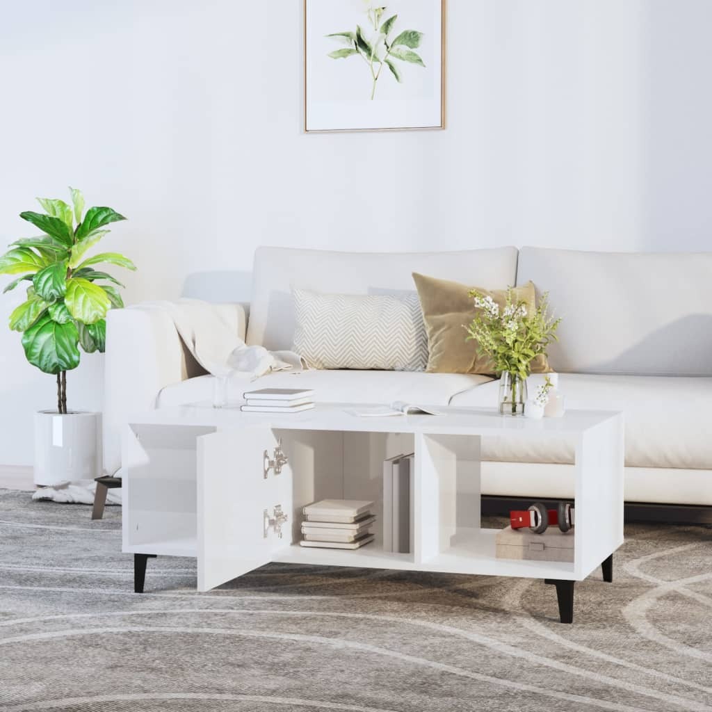 Coffee Table High Gloss White 90x49x45 cm Engineered Wood