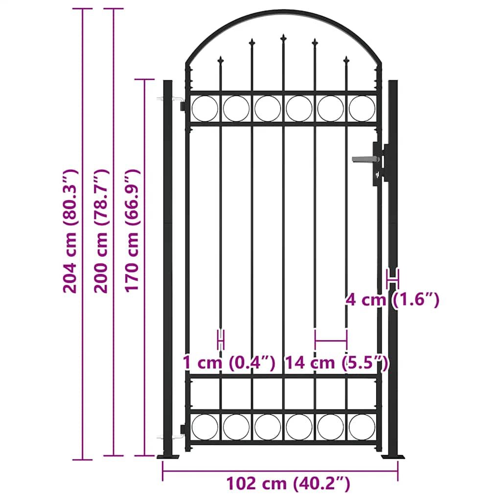 Fence Gate Double Door with Spike Top Steel 3x1.25 m Black