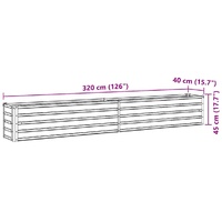 This Garden Planter Raised Bed is an excellent option for DIY enthusiasts looking to enhance their gardens, balconies, or patios. With a dimension of 320 x 40 x 45 cm, it accommodates a substantial volume of soil, providing ample space for your plants, vegetables, herbs and flowers. Crafted from heavy-duty galvanised steel, this planter pot is weather resistant, making it very practical for outdoor use. Assembly is required for this practical and versatile addition to your outdoor space. Elevate your gardening experience with this Garden Planter Raised Bed.