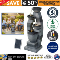 Enhance your indoor or outdoor space with this Solar Fountain, designed to deliver calming water flow with minimal upkeep. Featuring a classic cascading design with detailed sculptural styling, it adds visual interest while creating the soothing sound of flowing water for gardens, patios, balconies, or living areas. Constructed from durable polyresin, the fountain is built to withstand regular use. It is powered by a 3W polycrystalline solar panel and supported by a 7.4V 2000mAh lithium battery, allowing continuous operation during cloudy conditions or after sunset. The high-performance water pump provides a maximum flow rate of 350L/h with a lift height of up to 135cm, providing steady and consistent water circulation. With solar-powered operation and straightforward setup, this fountain offers an energy-efficient way to add character and movement to your space.