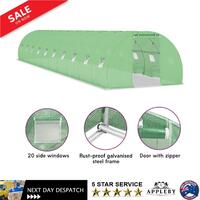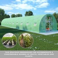 This Large Tunnel Greenhouse Walk In Flower Vegetable Plant House Shelter Shade 15x3m is capable of accommodating a substantial variety of fruits, vegetables, and plants. It Offers a solution for safeguarding your greenery from the elements, including wind, rain, sun, and bird damage. Constructed from 140 g/m² PE mesh fabric, a material 25% heavier than the standard mesh fabric by many competitors, preventing external influences even better. It features a sturdy, rust-proof galvanised steel frame for enhanced stability. Equipped with 8x38 cm windows for ventilation and one 100x185 cm door as well. Assembling this Large Tunnel Greenhouse Walk In Flower Vegetable Plant House Shelter Shade 15x3m is easy, and we recommend the addition of a foundation for increased sturdiness. Please note the roof of this greenhouse cannot withstand heavy snowfall.