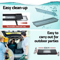 This Portable Charcoal BBQ Grill is your perfect companion for outdoor feasts, picnics, and camping adventures. Built with a durable black steel base and food-grade stainless steel grill racks, it provides safe, even cooking for mouthwatering meats and perfectly grilled vegetables. The grill features two convenient food trays to keep condiments and dishes within easy reach, while its removable ashtray makes cleanup effortless. Designed with excellent ventilation at the base, it allows steady airflow for consistent heat and efficient burning. Compact, portable, and easy to set up, this bbq grill lets you enjoy hassle-free outdoor cooking anywhere, anytime.