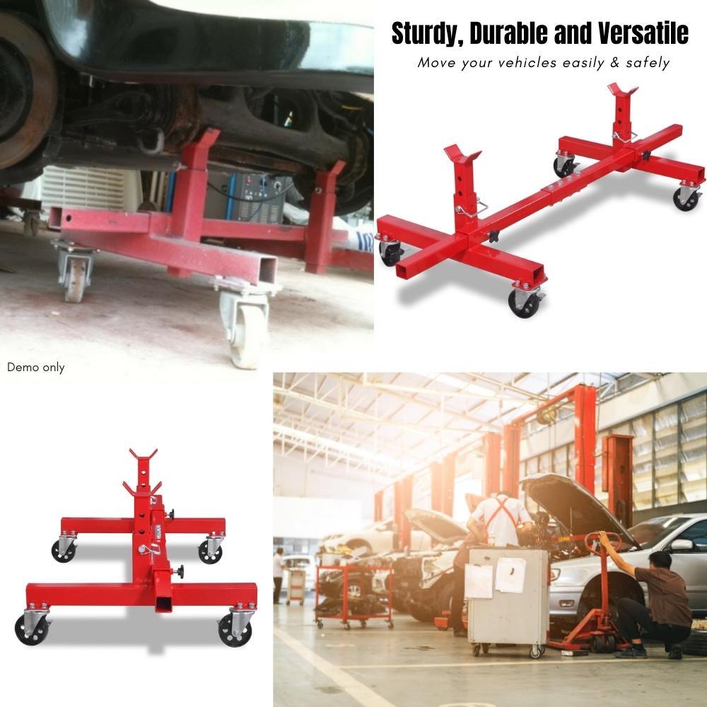 This mobile axle stand helps to move your vehicles easily as well as safely when normal manoeuvring is not possible. It can be used on the chassis, axle, sills or jacking points. This mobile axle stands locks into 3 different positions to suit your particular needs in various situations. It is also fully adjustable in length. Four large castors with brakes swivel in all directions, allowing you to move your vehicles effortlessly. Constructed from heavy-duty steel with a painted finish, this mobile axle stand is very robust and sturdy