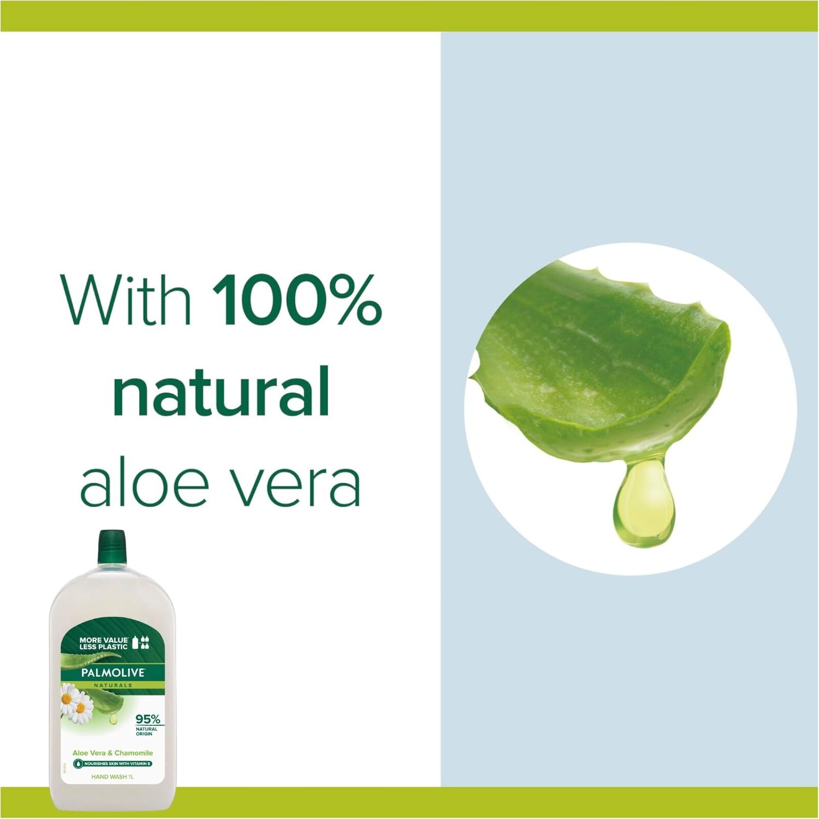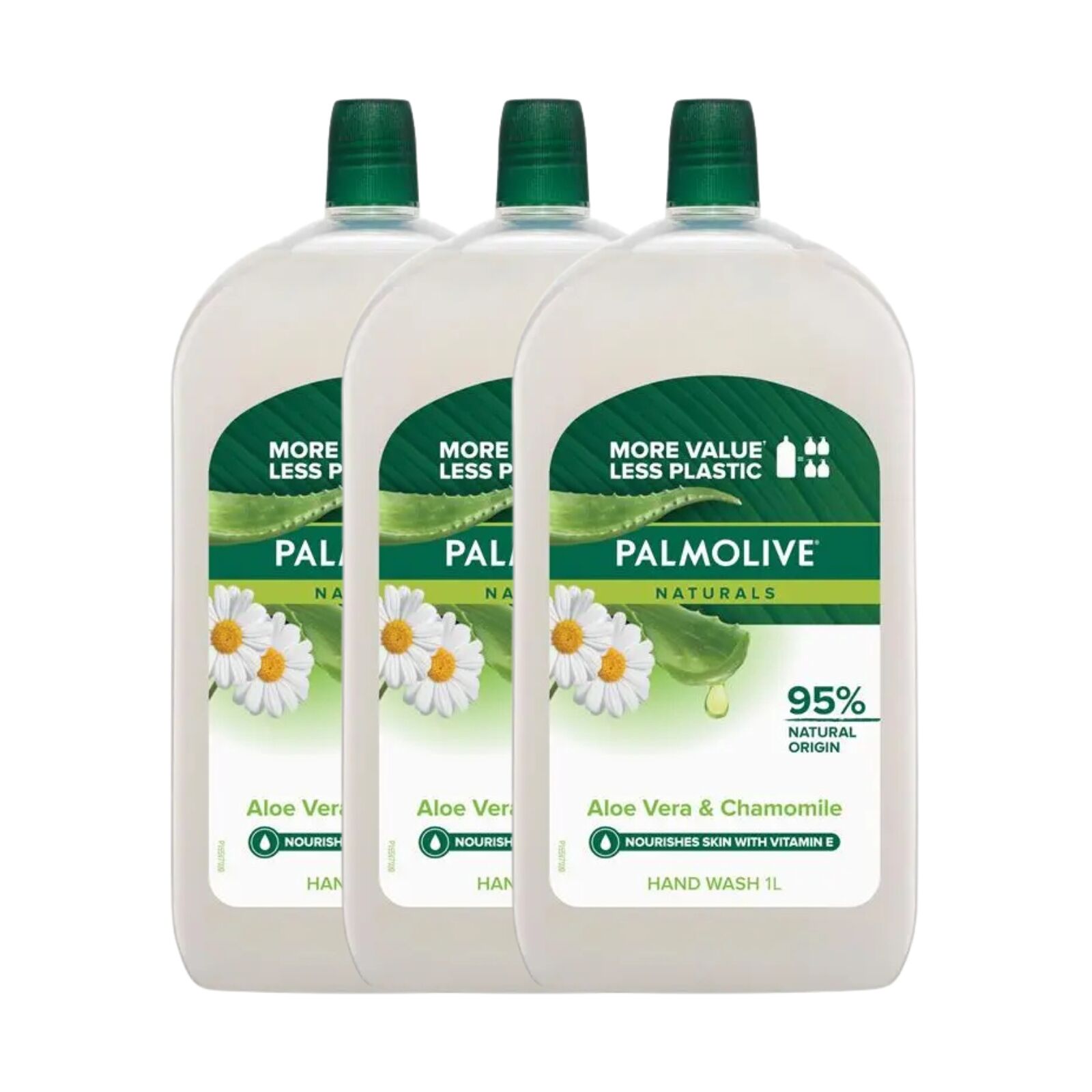 Cleanse and care for your hands with Palmolive Naturals Liquid Hand Wash Soap Aloe Vera and Chamomile. This rich, creamy liquid hand wash is formulated to remove germs while leaving hands feeling clean and cared for. Infused with aloe vera and chamomile, it is designed for everyday use and free from parabens, phthalates and alcohol. Supplied in a convenient triple pack, it offers great value for busy households and shared spaces.
