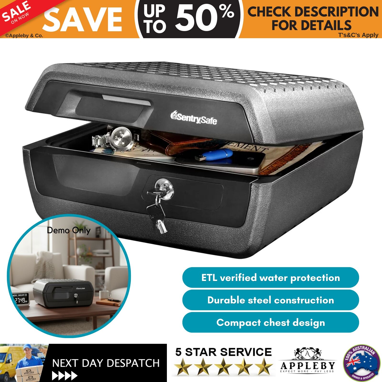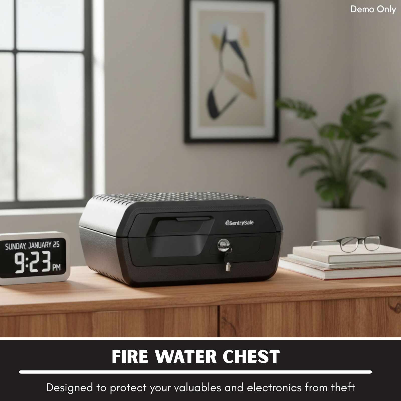 Protect important documents, valuables and electronic media with the SentrySafe Fire Water Chest. Built with durable steel construction, this compact security chest is designed to safeguard contents against fire and water damage while helping keep them secure from unauthorised access. Offering reliable protection in emergency situations, it is suitable for home use where peace of mind and practical storage are essential.