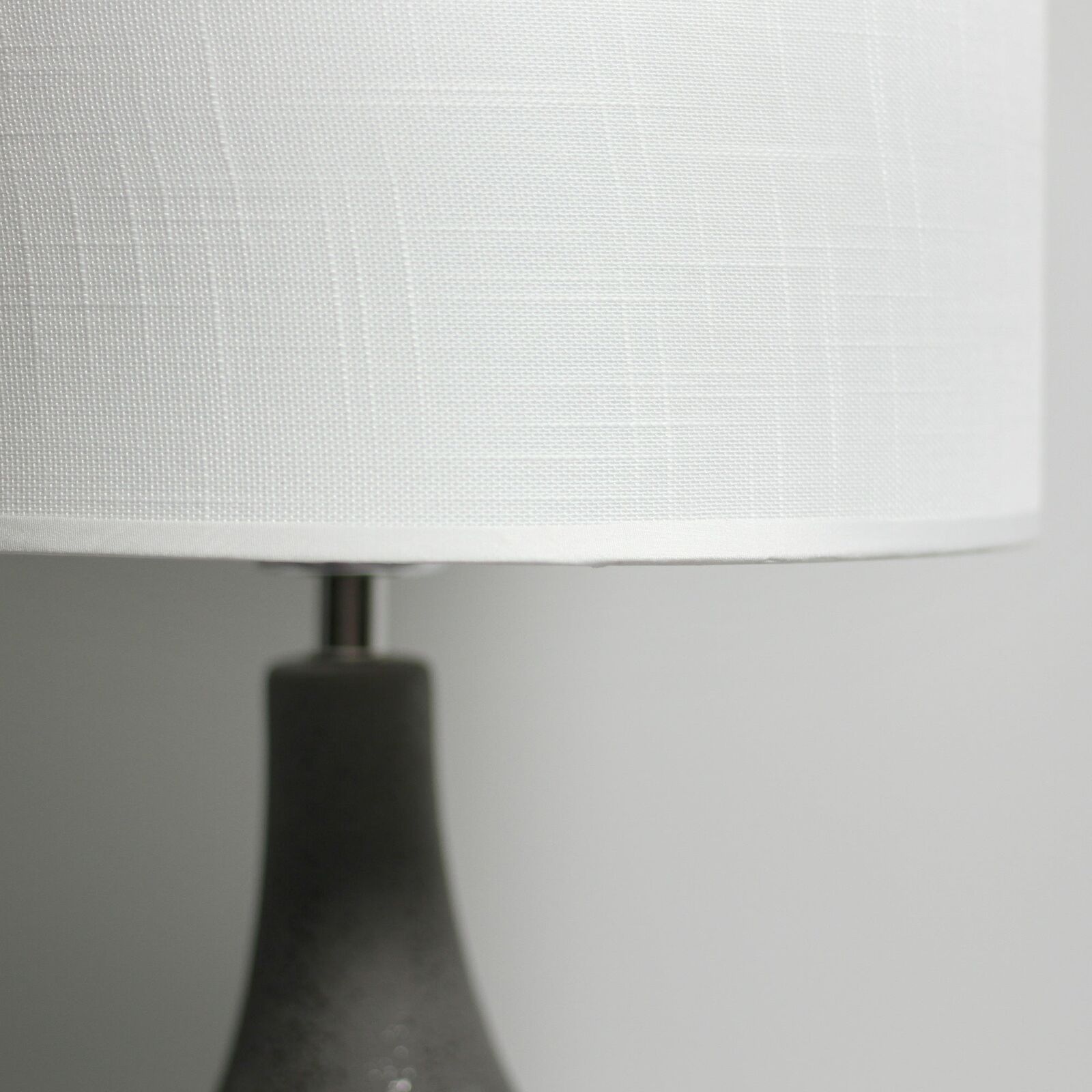 Classic Drum Shade: White fabric shade enhances the lamp’s ambient lighting and modern appeal.