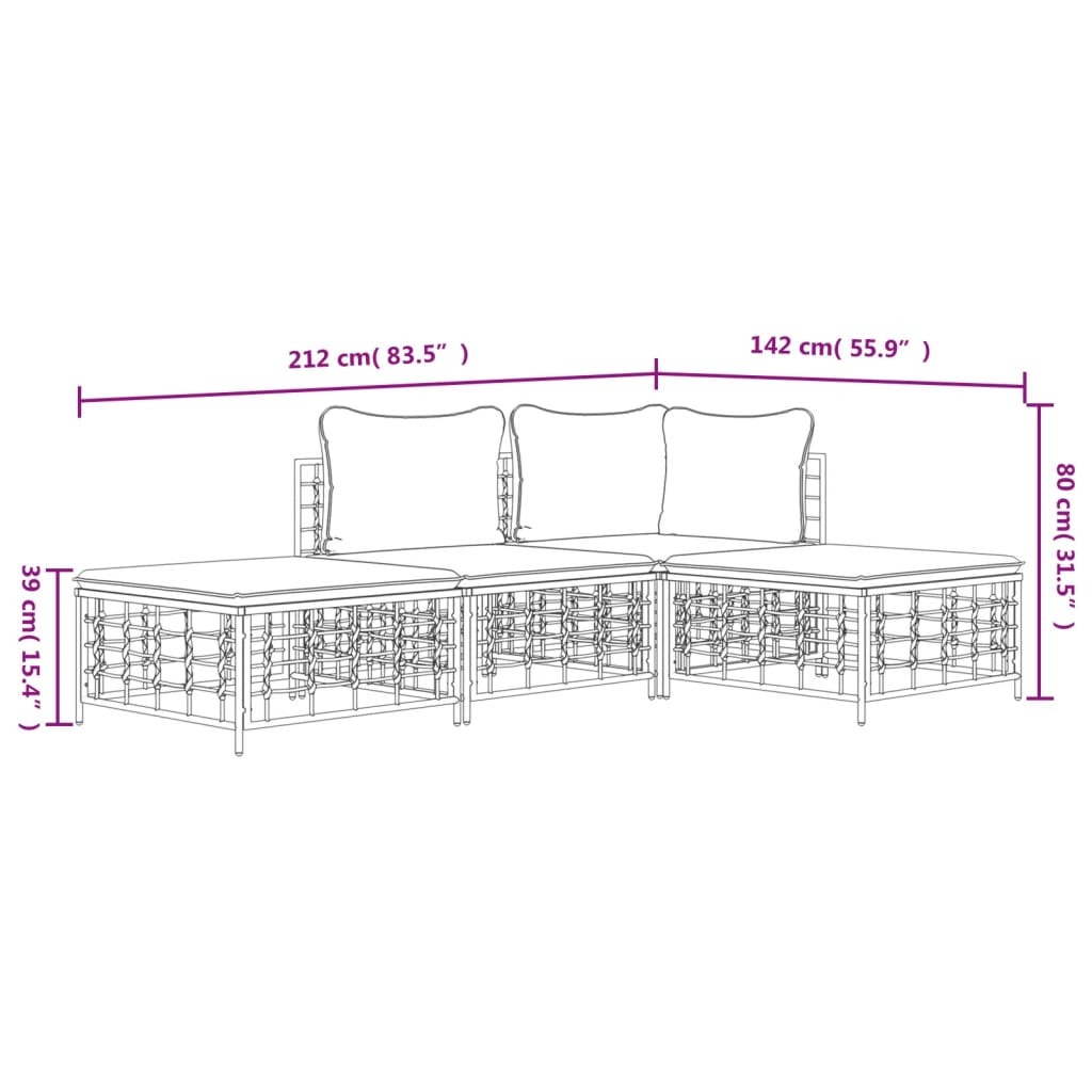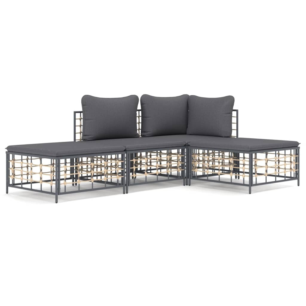 4 Piece Garden Lounge Set with Cushions Anthracite Poly Ratt