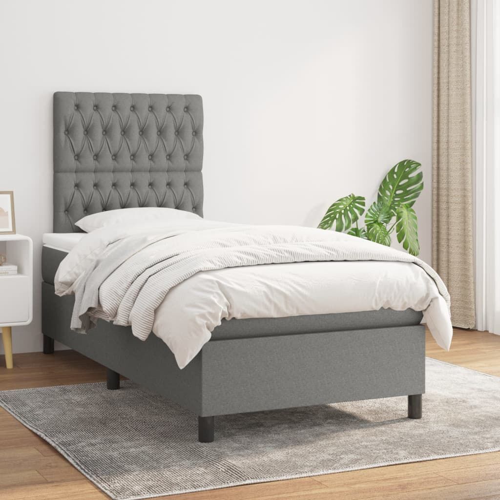 Box Spring Bed with Mattress&LED Dark Grey 107x203 cm King S