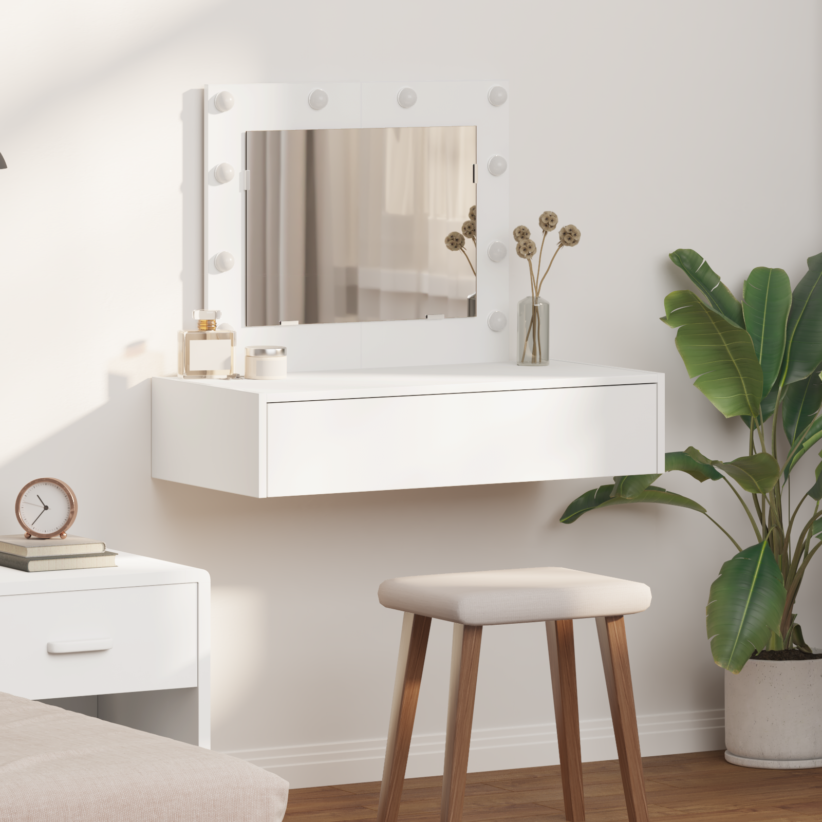 Makeup Table with LED Lights 100x40x135 cm MDF Black