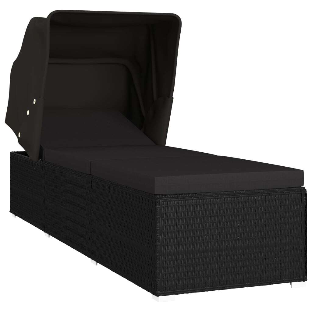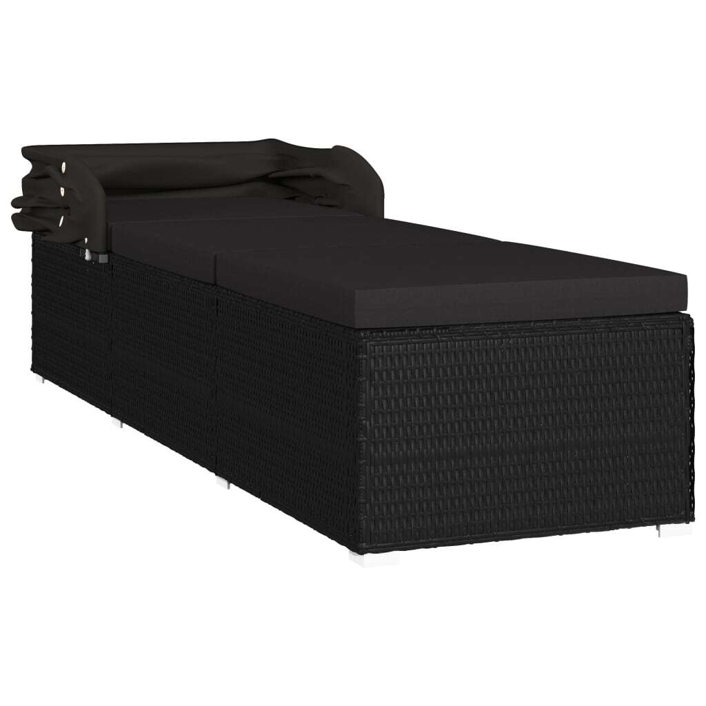 Convertible Sun Bed with Cushion Poly Rattan Black